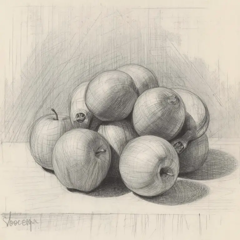 Try to shift your focus from seeing “an apple” to seeing the shapes, angles, and negative spaces that make it up. Look at how light falls across its surface, how the edges curve, and how it interacts with surrounding objects. Seeing in terms of shapes and tones rather than names helps you draw more accurately.